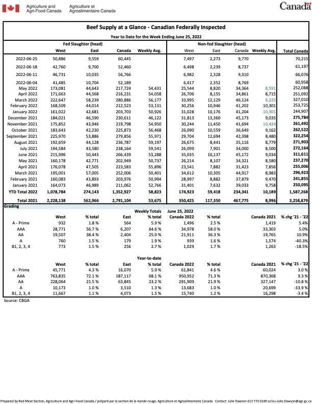 Tóm tắt mới nhất về tình hình cung cấp thịt bò Canada (tính đến ngày 25/6).